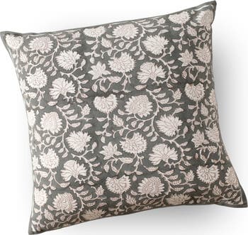 An exquisite handblock printed cushion cover, featuring a charcoal and off-white floral motif on pure cotton. At 18x18 inches, it’s a timeless accent that brings artisanal charm and quiet elegance to any space. Does not inlcude an insert.