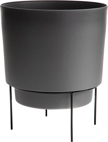 HOPSON COLLECTION by Bloem: Add a touch of modern and mid-century decor to your home or office with this charming planter and stand set. The planter is crafted from polypropylene plastic resin, so it is durable and can be used both inside and outside no matter the weather. The pot has a sealed base for indoor use and optional easy to knock out holes for drainage if used outdoors. The metal stand is power coated and rust resistant for year-around use. The planter can be removed from the stand and displayed separately at any time. Multiple sizes and colors available. *Plants not included.