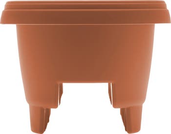 MODICA DECK RAIL PLANTER COLLECTION by Bloem: This planter is great for home or apartment use and helps you make the most of your porch or patio living space. Grow a mini garden in an elevated space. Compression design fits rail size 3.75" or 5.75" wide. Rail planter also works on widths slightly smaller (3" up to 3.75" OR 4.75" up to 5.75"). For smaller rail sizes we recommend securing with screws or zipties under railing for added stability (screws not included). Planter was designed to maximize inside growing space and features a tiered bottom design allowing dirt and roots to grow strong and deep. The planter feature a smooth texture with matte finish. Made of durable resin, this planter by BLOEM is 100-percent UV stable to prevent fading and cracking and ensures long-lasting use. Includes optional punch out holes for drainage. Use on patio, mailbox post, balcony, fence or deck railing.