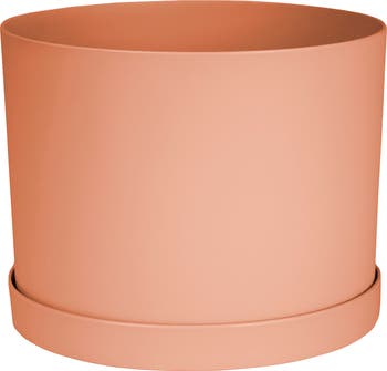MATHERS COLLECTION by Bloem: Add a touch of modern décor to your home or office with this charming planter. The simple modern round shape and matte finish complements any décor. Mathers planters feature a thick wall design and are great for adding a pre-planted grower pot or planting directly inside the planter. The pot is crafted from polypropylene resin, so it is durable and can be used both inside and outside no matter the weather. The planter includes pre-drilled drainage holes and a matching snap on saucer to prevent water damage indoors. This contemporary and modern plastic planter is weather-resistant & UV-protected for fade resistance. Made in USA. .