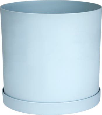 MATHERS COLLECTION by Bloem: Add a touch of modern décor to your home or office with this charming planter. The simple modern round shape and matte finish complements any décor. Mathers planters feature a thick wall design and are great for adding a pre-planted grower pot or planting directly inside the planter. The pot is crafted from polypropylene resin, so it is durable and can be used both inside and outside no matter the weather. The planter includes pre-drilled drainage holes and a matching snap on saucer to prevent water damage indoors. This contemporary and modern plastic planter is weather-resistant & UV-protected for fade resistance. Made in USA. .