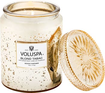 What it is: A clean-burning coconut wax–blend candle hand-poured into a metallic-flecked glass vessel and finished with an Art Deco–inspired lid.