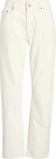 Cut from nonstretch denim, these mid-rise jeans are designed in a creamy wash and finished with ankle-grazing hems.