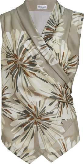 Pure silk pongee is a refined fabric characterized by a fluid texture and a semi-glossy appearance. The fabric is printed with a floral motif inspired by the dahlia, delivered in the season’s colors.