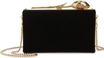 Erdem transforms a retro-elegant clutch into a sculptural work of art with this rich velvet version crowned by a gilded brass flower handle—each taking seven hours to produce via lost-wax casting. Inside, a velvety kid-suede lining adds another luxe touch.
