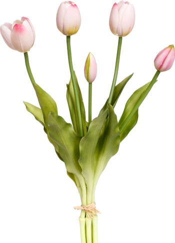 The Mark Roberts Blooming Tulip Bunch features soft pink blossoms that bring a fresh, elegant touch to spring décor. Each 15-inch stem is beautifully detailed, creating a lifelike floral display with lasting charm. Sold as a set of six, these tulip bunches are perfect for arrangements, vases, or seasonal styling throughout your home.