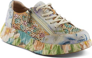 A captivating combination of floral prints and airy cutouts transforms this platform sneaker into a wearable work of art, while plush cushioning offers lasting comfort.