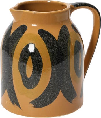 - This boho inspired pitcher features intricately hand painted stoneware in a 2-tone finish