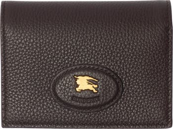 A slim folding card case made in Italy from grainy calf leather, lined with a Burberry Check cotton linen blend in our signature sand beige. The Bloomsbury collection is finished with a leather and metal Knight stamp, an archival motif first seen on Burberry bags in the 1980s.||Four card slots|Hand-painted edges|Leather patch with Equestrian Knight Design at front|Embossed Burberry lettering at inner|Comes with a dust bag