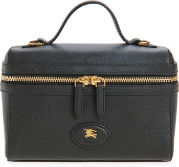 A structured silhouette inspired by classic vanity cases adds a retro feel to this compact bag crafted in Italy from grainy calfskin leather and lined in woven Burberry Check. Part of the Bloomsbury collection, the compact style is defined by a leather-and-metal Knight stamp—an archival motif first seen on Burberry bags in the 1980s.