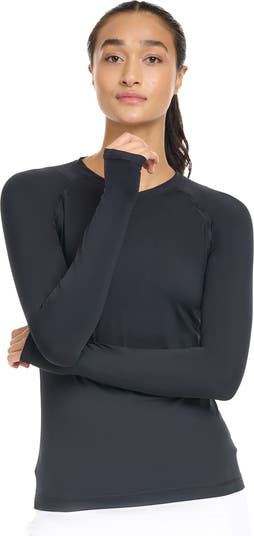 - Elongated sleeves with thumbholes for coverage.