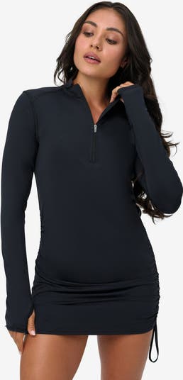 Meet the multitasking favorite your outdoor wardrobe’s been waiting for. The Drawstring Cover Up Dress features UPF 50+ protection that never washes out, helping to block 98% of UVA/UVB rays while keeping you cool, polished, and covered—no matter your plans. Adjust the side drawstrings to wear it as a dress, tunic, or long swim shirt, depending on your activity. With a high zippered neckline for added neck protection, elongated sleeves for hand coverage, and a true fit that moves with you, it transitions effortlessly from water to town. Pair it with BloqUV tights for a sophisticated, sun-safe look.
