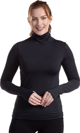 The BloqUV sun protective, long sleeve turtleneck for women offers excellent high neck coverage for all outdoor activities, ensuring UPF 50+ protection. This versatile sun protective top is suitable for year-round wear. It can be used as a shirt to provide complete SPF protection from the neck to the hands while keeping you cool and comfortable. This piece is a perfect addition to any travel wardrobe, suitable for various activities such as skiing, running, walking, swimming, horseback riding, fishing, boating, biking, paddle boarding, tennis, golf, or gallery hopping.