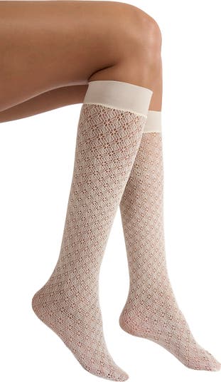 Featuring an open-stitch pattern, these Italian-made knee-high socks add perfect dimension to any look. Knit cuffs help these stay in place for comfy wear.