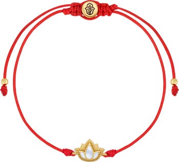 Blossoming Spirit Mother of Pearl Lotus Red String Bracelet