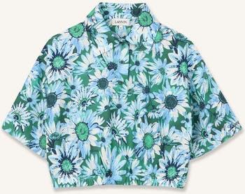 Cherish every moment with our viscose and silk shirt collar blouse. Dressed in a beautiful all-over Marguerite print, it is the sweet blend of elegance and comfort. Its wide sleeves and elasticated hem offer a casual look while preserving style. The delicate LANVIN logo buttons add a refined touch. Adopt a timeless look for your little adventurers!(see glossary)