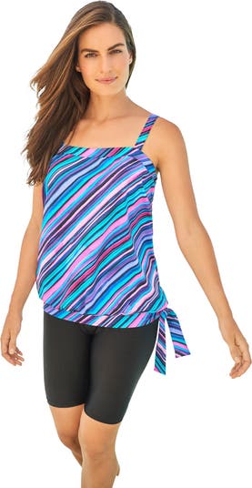 An elegant alternative to traditional tankinis, draped to flatter with a side tie. Soft foam bra cups for bust support. Adjustable straps.