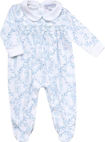 Our beautiful smocked footie comes with an imprinted design and smocked detailing. It has also a ruffled collar, snap leg closure, and an adjustable button behind the collar. Made with 100% Peruvian Pima cotton makes this footie a comfortable and durable infant wear piece. This footie allows your baby to crawl, walk, sleep and cuddle without any hassle. The properties of this fiber create for a more durable fabric, that gives it its unparalleled luxurious touch that is most desired. Snap Leg Closure Buttons located behind the collar for easy on-and-off. Long sleeves 100% Peruvian Pima Cotton Machine Washable Made in Peru