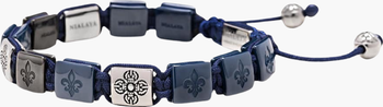 - Blue flat ceramic beads with stainless steel dorje beads and drawstring lock