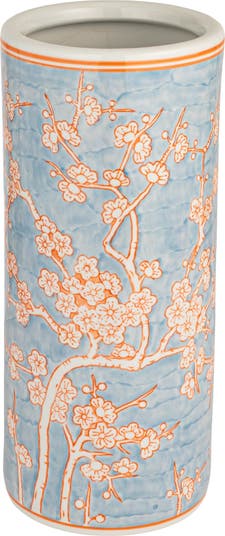 Bring a touch of elegance to your entryway with this 18" Blue Ceramic Umbrella Stand, featuring a beautiful floral motif. Crafted from durable ceramic, this stand not only offers a functional place to store your umbrellas but also serves as a decorative accent in your home. The vibrant blue finish and intricate floral design evoke a sense of timeless artistry, making it a standout piece. Perfect for adding a pop of color and style to your foyer or hallway, this umbrella stand blends both practicality and beauty.