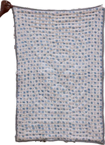 Each quilt is meticulously handcrafted by skilled artisans using traditional hand-block printing and Kantha stitching techniques. The elephants are delicately pressed onto 100% cotton fabric using hand-carved wooden blocks dipped in eco-friendly dyes, ensuring a gentle touch that's safe for baby's sensitive skin. Produced in small batches, our quilts are a testament to artisanal skill. Slight variations in each piece highlight their unique and handcrafted nature. This baby quilt not only provides comfort but also serves as a potential heirloom to be cherished for years to come.