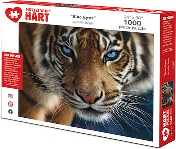 This amazing detailed illustration by artist Collin Bogle captures the beauty and intensity of the largest member of the cat family, Panthera tigris, Tiger. Endangered throughout its range, from Russia to Southeast Asia, look for this great cat in this 24”x 30” 1000 piece puzzle. By artist Collin Bogle. This vibrant puzzle will bring you hours of enjoyment. We pride ourselves on our high quality puzzles containing the finest art, photography and graphics. Hart puzzles also has a mission to help better our communities. When you purchase a Hart Puzzle, you become a "piece" in our cause to help. With every puzzle we sell, Hart Puzzles automatically donates to a cause such as our National Parks, animal shelters and veterans.