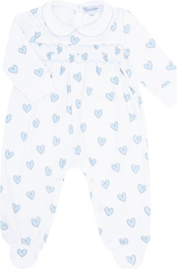 Blue Heart Print Smocked Footie - Baby