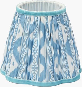 Our chic Soft Blue Ikat Scalloped Lampshade adds a fresh touch to your home. Elegant and chic, it features Serena Fresson's Ikat Fabric in a fabulous blue with a matching lighter blue velvet trim.