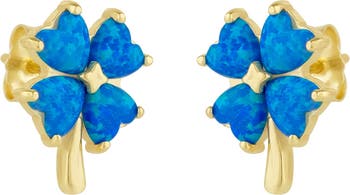 Blue Opal Four Leaves Clover Sterling Silver Stud Earring