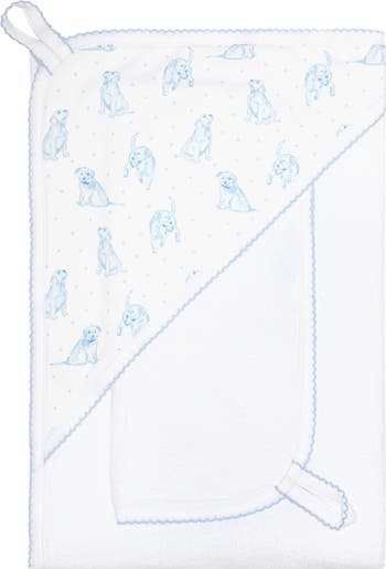 Wrap your little one in softness after every bath with our Blue Puppy Love towel. Made from absorbent Peruvian Pima cotton, it gently dries delicate skin without irritation. Its generous size and durable finish make it ideal for daily use. With a subtle puppy print and neat detailing, this towel adds a playful and refined touch to bath time.