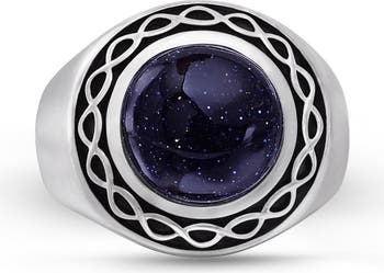 Featuring the shimmering beauty of Blue Sand Stone this Sterling Silver Signet Ring adds a touch of celestial elegance. Crafted for the discerning man this Blue Sand Stone Signet Ring in Sterling Silver provides a unique and striking design.