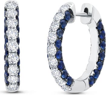 Gemstone: 2 Carats of Blue Sapphires, 1.41 Carats of G-H Color White Diamonds (34 pcs) Metal: 18K Gold, 4.59 Grams Colors: White Gold Finishing: Gemstone Sides, Diamond Front