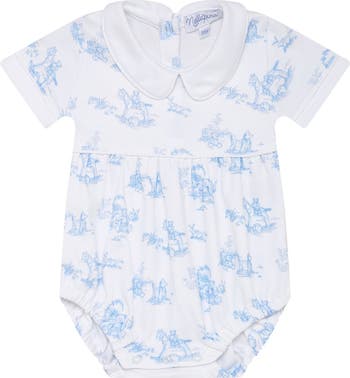 Ensure the ultimate comfort for your precious one with the soft and delicate Blue Toile Baby Bubble. It is made of the gentlest Pima Peruvian cotton that makes it super soft. The durable and delicate Blue Picot Trim fabric snugly holds your baby and provides the comfort of a mother’s arms. Gift your little one the coziness and warmth of love with the Blue Toile baby bubble. Snap Leg Closure Buttons located behind the collar for easy on-and-off Short sleeves 100% Peruvian Pima Cotton Machine Washable