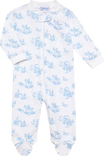 Keep your little one cozy and comfortable in our lightweight Pima Cotton footie with a classic look and a comfy feel designed with our toile fabric. The snuggly footie comes with a zipper for easy dressing and undressing.