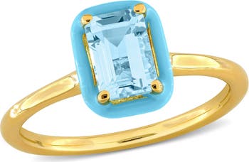 Elevate your style with the enchanting beauty of this Solitaire Ring crafted in yellow-plated sterling silver. Featuring a vibrant octagon-cut blue topaz gemstone at the center, the blue enamel plated halo adds a modern touch to the classic solitaire design. This ring is perfect for adding a pop of color to any ensemble. Whether worn alone or stacked with other rings, it's sure to become a favorite in your jewelry collection.