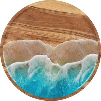 Blue Wave on Wood Lazy Susan Chip and Dip Round Serving Tray