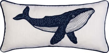Blue Whale Embroidered Throw Pillow, 10" x 20"