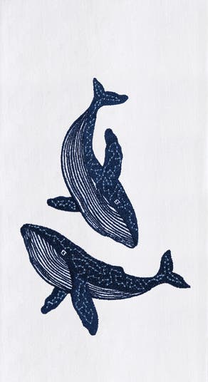 Blue Whales Kitchen and Bathroom Embroidered Hand Towel