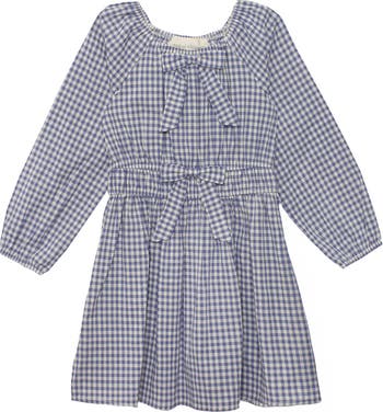 The Blueberry Jam Dress is the perfect blend of timeless design and everyday comfort for your little one. Its blue and white checkered pattern gives it a classic feel, while the long sleeves and gathered round neckline add an extra touch of softness. A bow at the neckline creates a playful detail, and the cinched waist?tied with another bow?offers an adorable and adjustable fit. Fabric Content & Care 100% COTTON Machine Wash Cold | Line Dry | Do Not Bleach