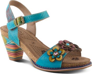 Hand-painted designs and flowery embellishments elevate a versatile leather sandal fit with a cushy padded footbed for comfort.