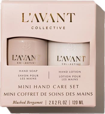 - Blushed Bergamot Mini Hand Soap (2 oz.): a luxurious, plant-based formula that gently cleanses, leaving hands soft and smooth