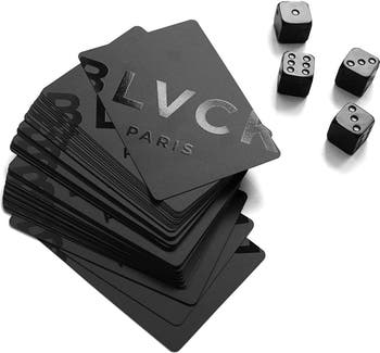 Bring a whole new look to your card games with the brand new set of blackout 'Blvck Playing Cards'. Each card features a beautiful matte black finish with subtle glossy highlights to reveal the design and details. The unique glossy black details reflect the light, changing the design from ultra black to bright white. For a limited time, we are offering the Blvckout Bundle which includes 2x Blvck Playing Cards Packs, 4x Premium 'All Black' Dice with complimentary gift packaging included for the ultimate Blvck experience.