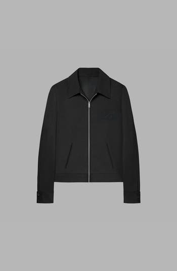 - Features a full front zipper, discreet side pockets, and a sharp collar