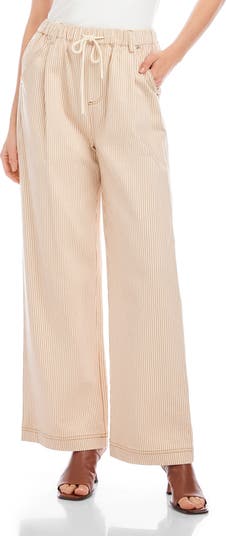 Blythe Stripe Stretch Cotton Drawstring Wide Leg Pants