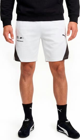 PUMA pairs with BMW M Motorsport to bring the brand's high-performance energy to everyday sweat shorts sporting intake-inspired panels angling up the legs. Made of cotton-blend fleece, they feature a close, comfortable fit that stays out of your way whenever you rev your engines.