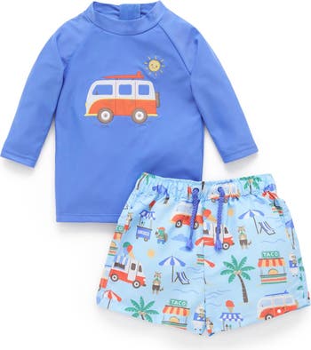 Purebaby Board Short & Rashie Swim Set, Main, color, Cancun Print