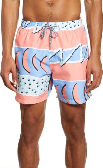 These '90s-print, quick-dry swim trunks are for chilling out, maxing and relaxing all cool by the pool or in the sand.