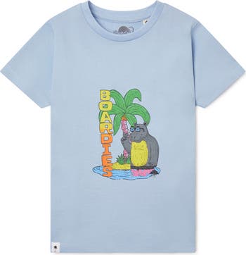 A sun-loving hippo lounges in the water at the front of this playful graphic tee cut from lightweight cotton.