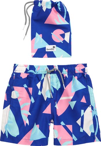 A tropical print splashes allover these quick-dry swim trunks ready for your kid's next swimming adventure.