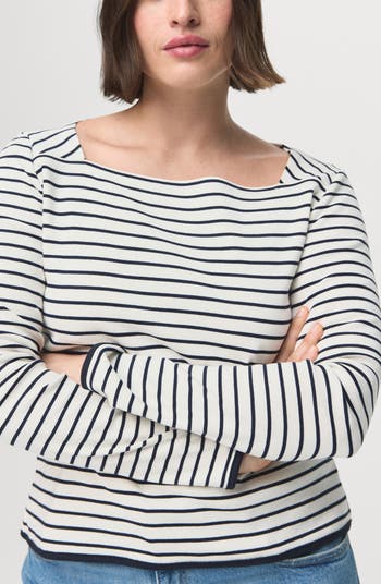 A angular boat neck and a slightly fitted silhouette make this endlessly wearable top lovely as a first layer or a solo player.